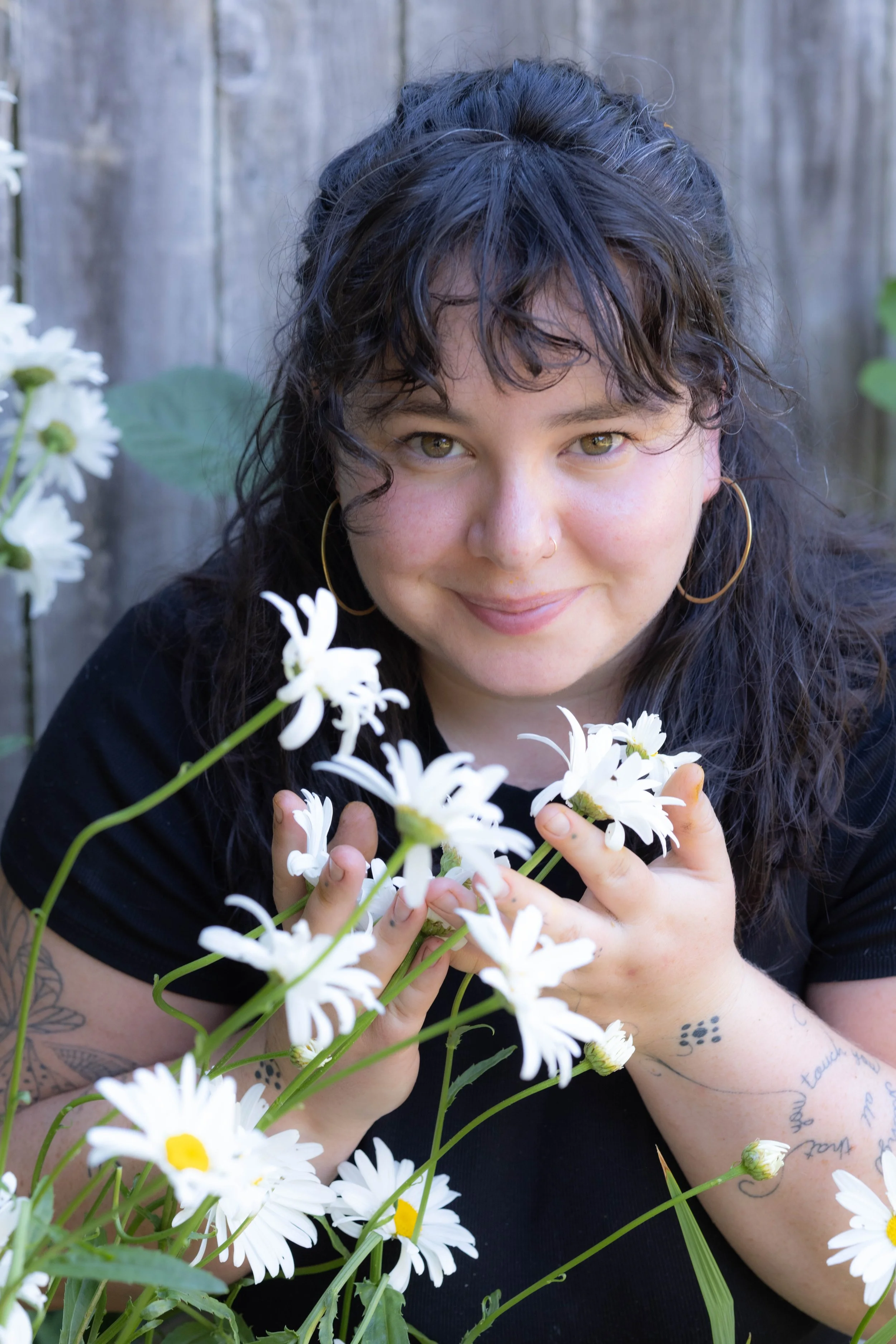 In 2019, Elayna returned to Portland to be closer to family and pursue her passions for teaching and farming. She eventually found herself on production farms, growing food, flowers, and herbs for her community—work that remains central to her life.